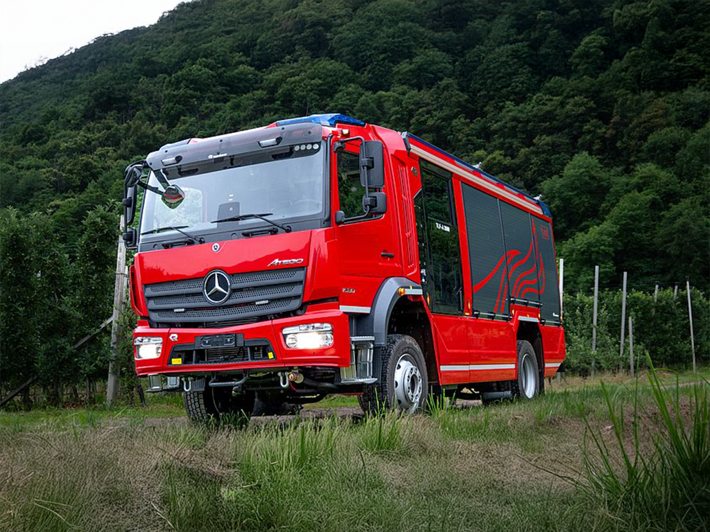 Rosenbauer Firefighting Truck Mounted on Mercedes Benz Arcos 2036/Ford, (4×2), Diesel Engine, Water Tank 6,500L + Foam Tank 500L. Water Pump Capacity 3.000 l/min at 10 bars when operating from the tank